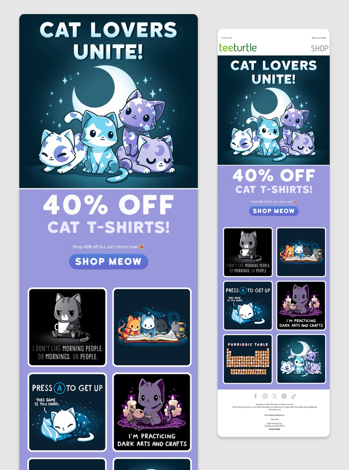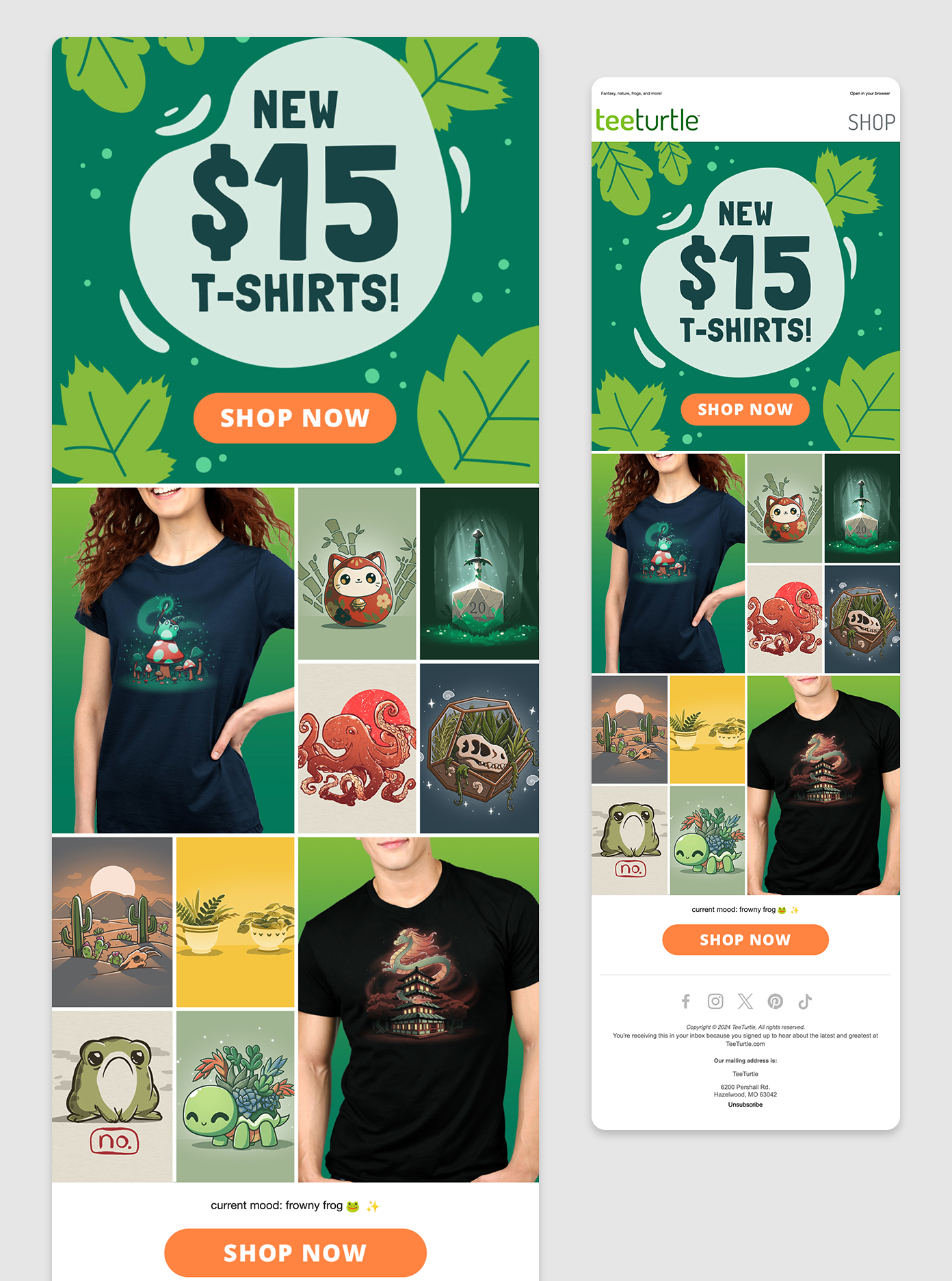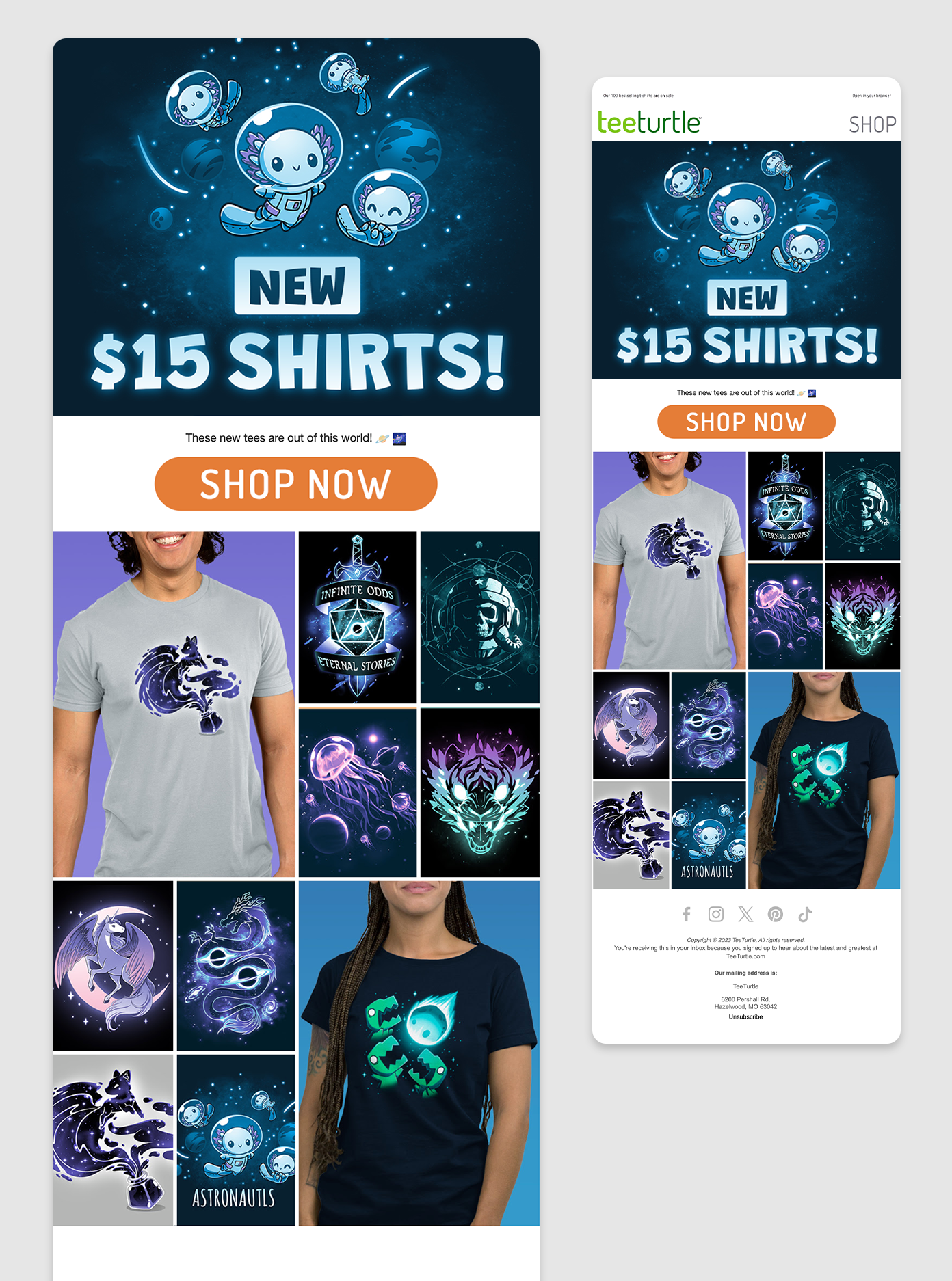 A cohesive body of email creatives that supported TeeTurtle’s ongoing promotional calendar, reinforced brand presence, and delivered visually engaging designs for multiple short-lived campaigns.